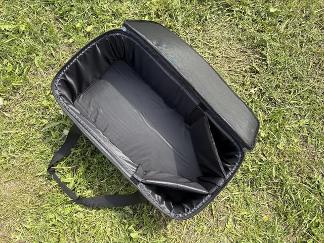 - Максимальный уровень защиты: Стенки, дно и крышка сумки усилены плотным вспененным уплотнителем толщиной 10 мм. Такая конструкция создает защитный кокон, который эффективно амортизирует сильные удары и давление при транспортировке в багажнике.
